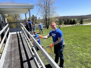 At Patriots Cove, where veterans, first responders and other public servants – many dealing with PTSD – can enjoy fly fishing, trail walking, and support group retreats, Williams employees cleared trees on recently donated land and replaced weathered fascia boards on the Main Lodge.