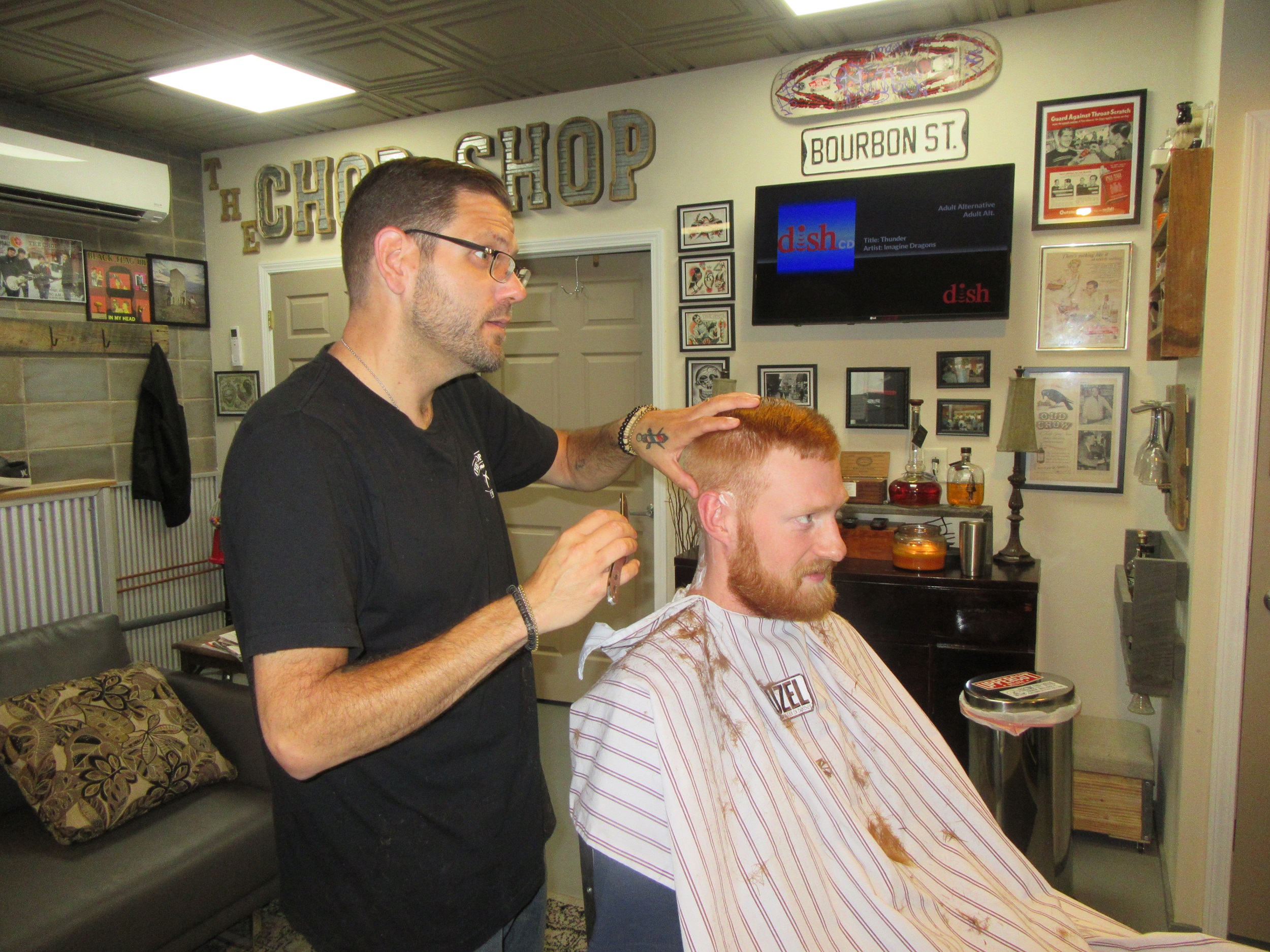 Luke Wright of Athens (seated, above) says that he prefers the Chop Shop because he has never been able to find a stylist at a salon who can give him the cut that he wants.