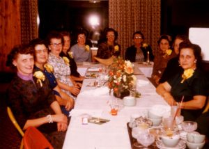 Later Auxiliary presidents (above) – Ann Sullivan, Hazel Bruce, Ann Smith, Mary Ross, Jean Post, Ellen Franklin, Frances Lewis, Louella McCormack, and Dorothy Shultz – were honored at a dinner in 1963.
