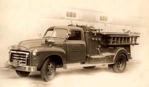 The group immediately set to the task of procuring a fire engine – not to exceed $8,000. On June 27, the directors ordered a GMC truck (above) equipped with “high pressure Fog Fire Equipment” at a cost of $7,242.