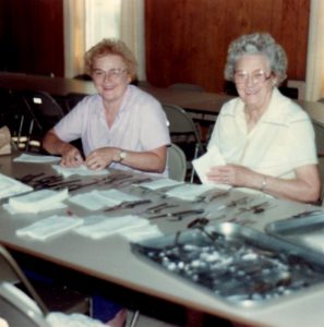 Helen Ferguson and Evelyn Neily (above) wrap silverware in preparation for the 1984 ox roast.