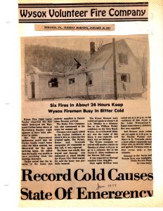 Newspaper accounts point to several events during WVFC’s history that proved especially challenging. Severe cold and abundant snow during the winter of 1977, for example, hampered firefighting efforts, especially in mid January when six fires in 24 hours (above) brought firefighters out of their own homes to help others. At least three of the calls were reported as chimney fires, with a fourth determined to be the result of a faulty heater.