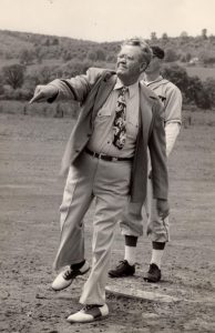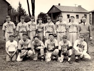WVFC sponsored a baseball team – the Wysox Owls (above) – and supported the construction of a new baseball field on the recreation grounds, with Sam Cass (below) throwing out the first pitch at its dedication.